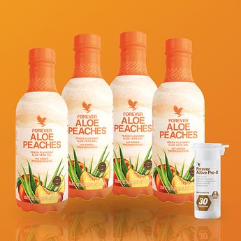 Форевер Алое з Персиком включає в себе всі переваги алое Вера та стиглих на сонці персиків. Форевер поєднала солодкий, соковитий смак персиків, стиглих на сонці, з усіма перевагами чистого гелю Алое вера з м'якоті його листя. Результатом є ароматний напій, який не тільки сприяє травленню, але й насичений поживними речовинами та антиоксидантами.